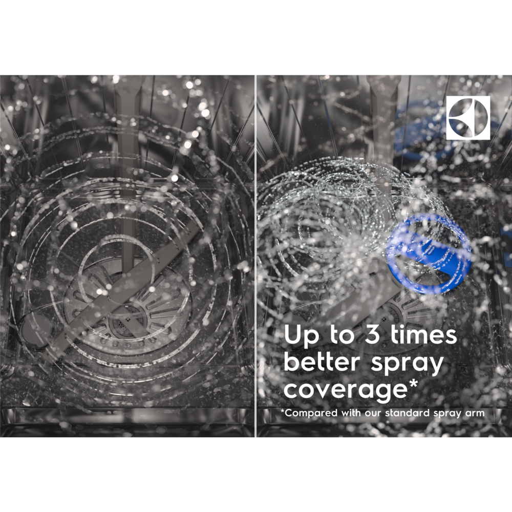 SatelliteClean — это безупречная чистота: по сравнению со обычными приборами качество мытья улучшается до трех раз. Двойное вращение разбрызгивателя с постоянной сменой угла струй тщательное отмывает даже габаритную посуду.