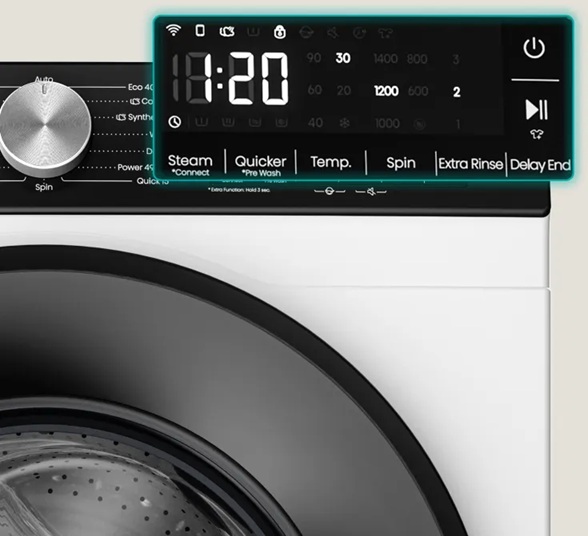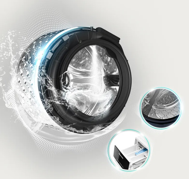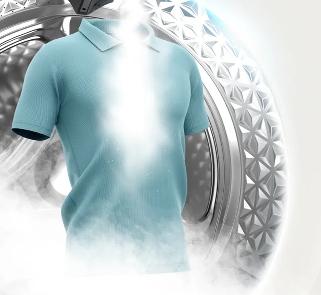 Функція Pure Steam використовує вдосконалену систему подачі пари, яка ефективно видаляє плями та дезінфікує білизну, зберігаючи її м'якість і не пошкоджуючи тканини. Ваш одяг завжди виходитиме свіжим і м'яким, без потреби в прасуванні.