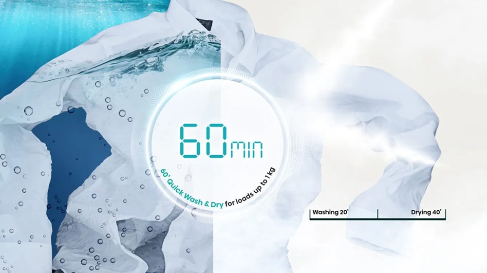 З функцією Wash&Dry 60’ вам не потрібно турбуватися про вибір правильного режиму прання для щоденних невеликих завантажень. Підходить для завантажень до 1 кг.