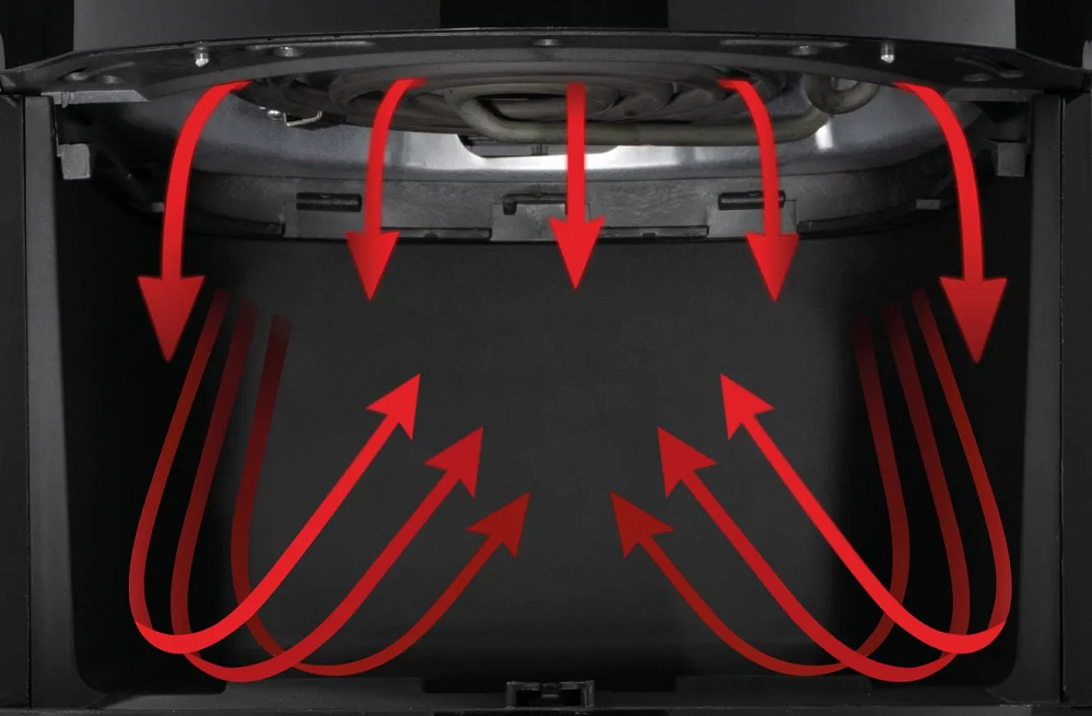 Гаряче повітря циркулює зверху донизу й у зворотному напрямку, оптимально розподіляючи тепло. Для хрусткої скоринки та соковитої серцевини.