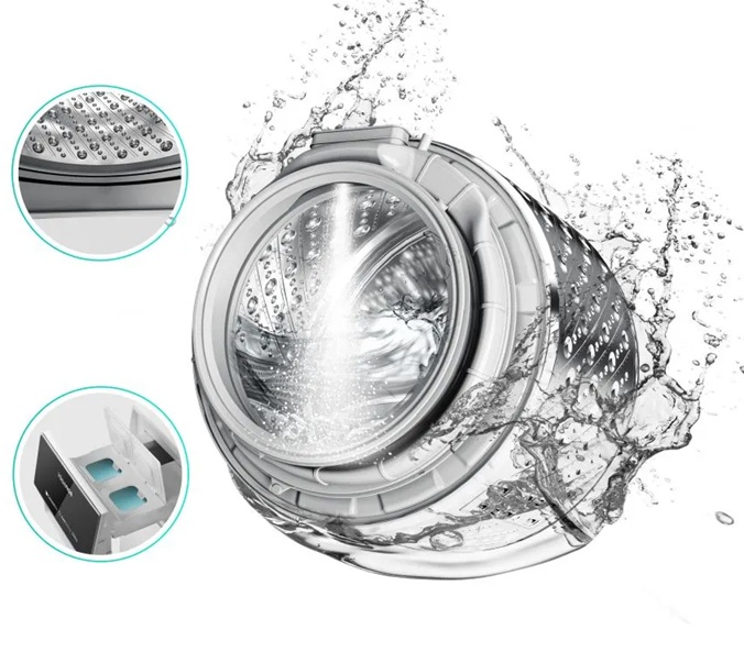 Цей прилад видаляє бактерії через очищення барабана* й очищення мильниці, а функція Pure Jet допомагає змивати плями на дверцятах і з мембрани. Мембрана тут також виготовлена зі стерильного матеріалу.