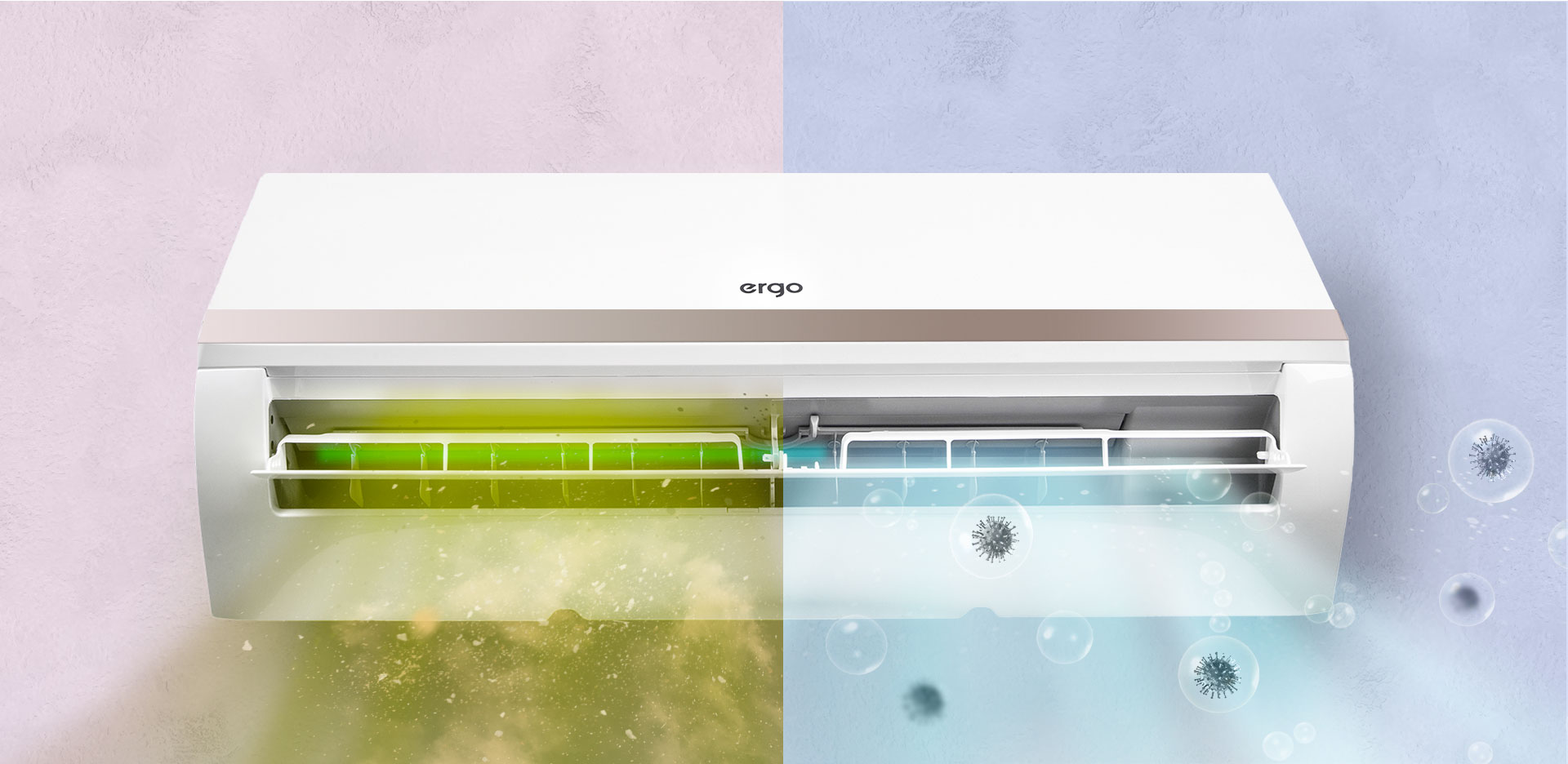 Ефективний протипиловий фільтр із щільною структурою - є першим кроком: очищується повітря, що проходить крізь нього і, звісно, крізь стільники теплообмінника внутрішнього блоку.