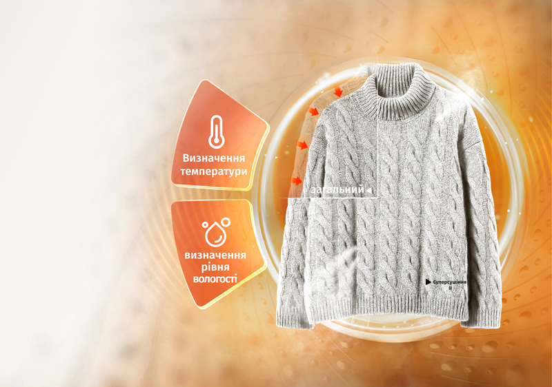 Визначаючи рівень вологості вашого одягу, сушильна машина розумно підбирає правильний цикл сушіння для кожного завантаження. Вона також контролює температуру та зупиняється, коли ваш одяг повністю висохне, щоб запобігти його перекручуванню.