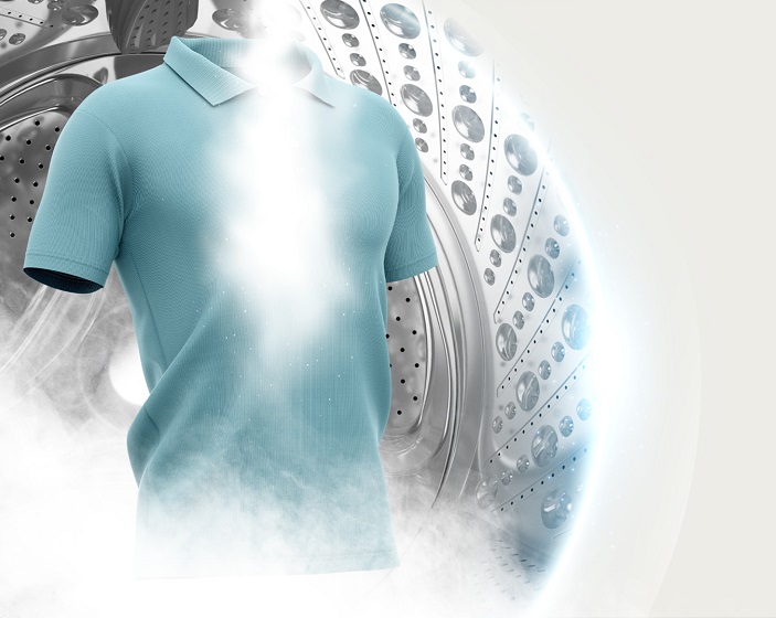 Перед початком сушіння з верхньої частини барабана випускається пара, яка допомагає прибрати складки та запах. Після цього додається необхідна кількість води, і ваш одяг стає гладкішим без жодного прасування.