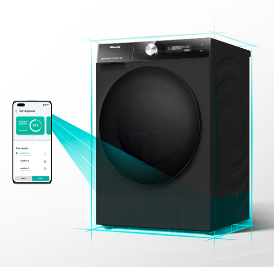 Пральна машина з лікарем усередині! У разі несправності, що є вкрай малоймовірним, засоби самодіагностики негайно сповістять вас про це за допомогою унікального коду помилки, який ви можете легко знайти в посібнику користувача у вашому мобільному телефоні. Це робить усунення несправностей швидким і зручним, заощаджуючи ваш час і нерви, а також гарантуючи безпеку вам і вашому приладу.