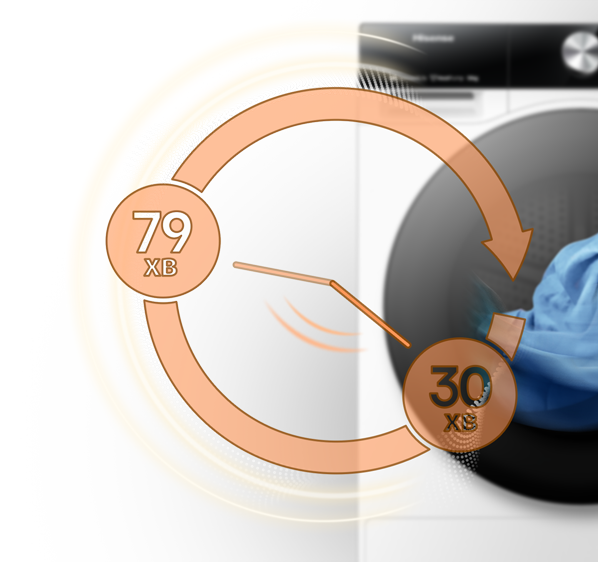 Ваш одяг буде сухим менш як за 30 хвилин. Або, якщо потрібна потужніша програму сушіння, ви можете висушити 2 кг усього за 79 хвилин. * 30 хвилин підходять для 0,5 кг завантаження.