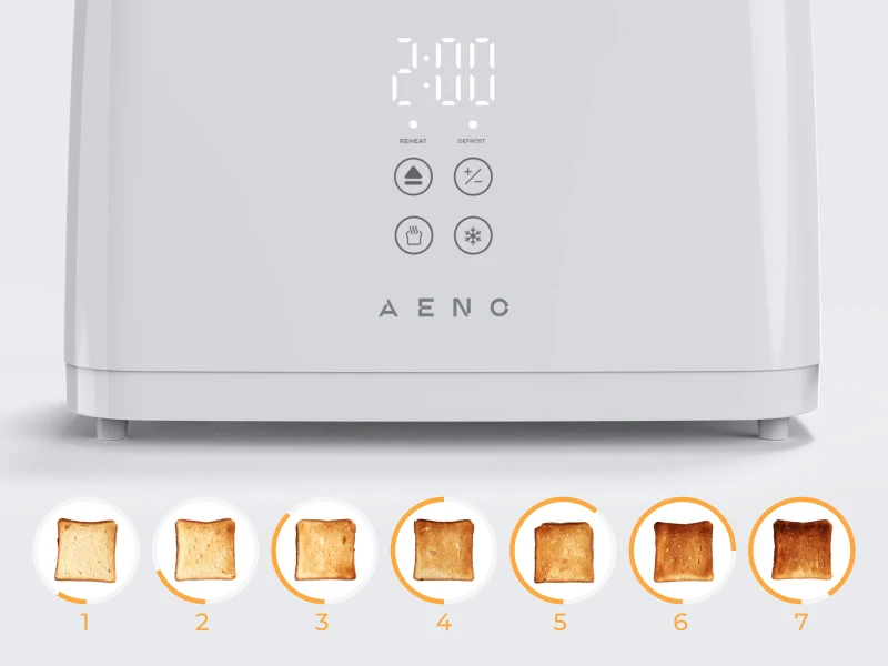 Обирайте саме той рівень підсмажування, який вам подобається – від легкого золотистого відтінку до глибокої хрусткої скоринки. Завдяки семи рівням підсмаження ви можете приготувати кожний шматочок під свій смак. Ідеально підходить як для м’яких сніданкових тостів, так і для хрусткої основи під бутерброди