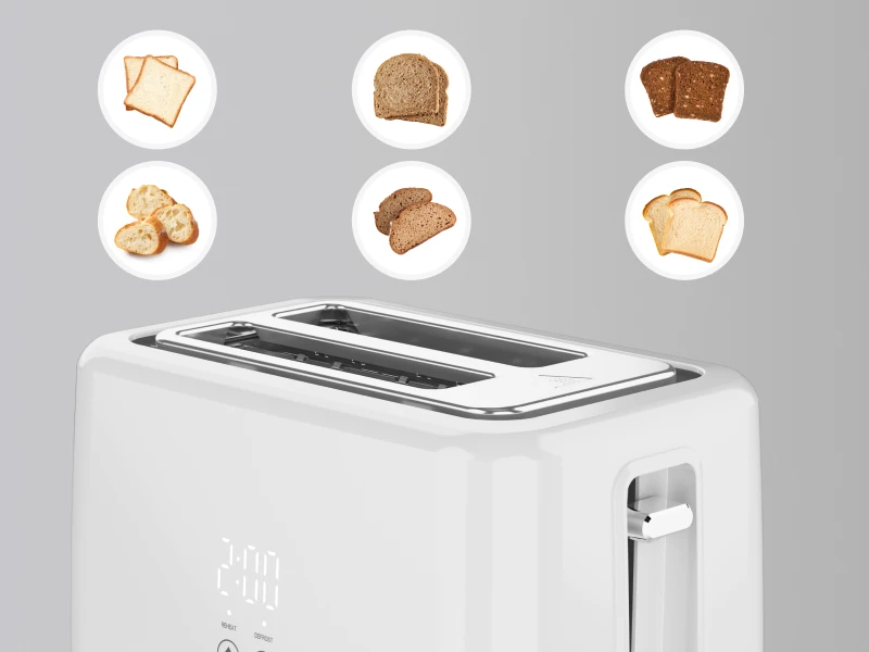 Обирайте з кількох рівнів підсмаження, щоб отримати ідеальний результат — від ледь золотистого до максимально хрусткого. Любите м’який теплий хліб чи повністю підсмажений із виразною скоринкою — регульовані налаштування дозволяють створити саме той смак, який вам подобається