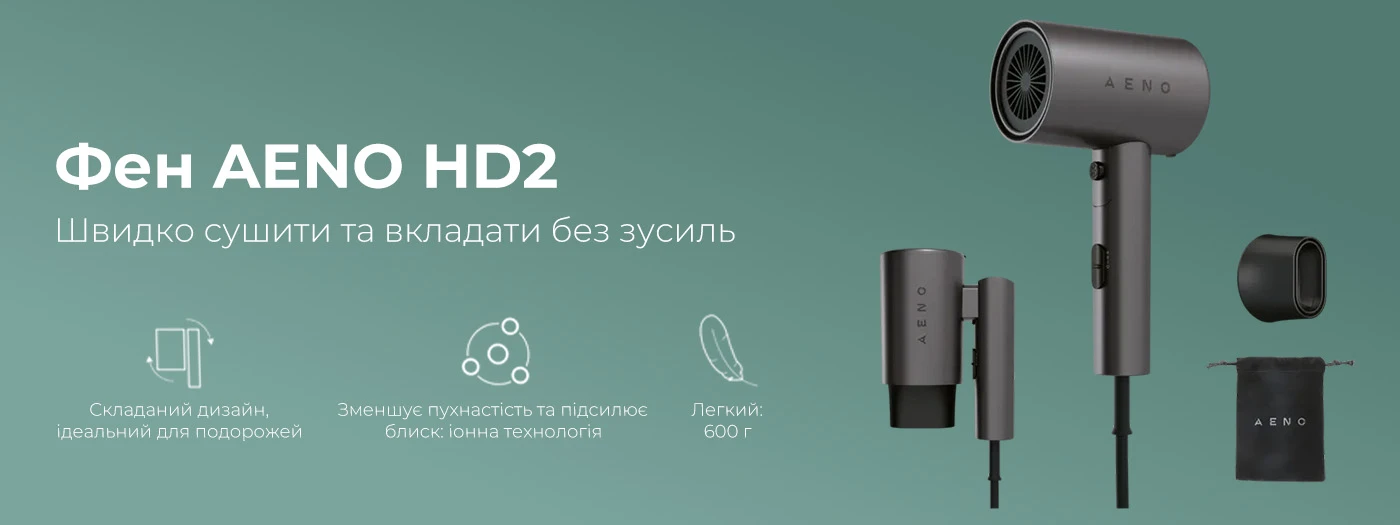AENO HD2 важить всього 600 грамів, він легкий та ергономічний, що забезпечує комфортну укладку. Компактний розмір робить його легким у використанні, зменшуючи навантаження під час тривалого використання.