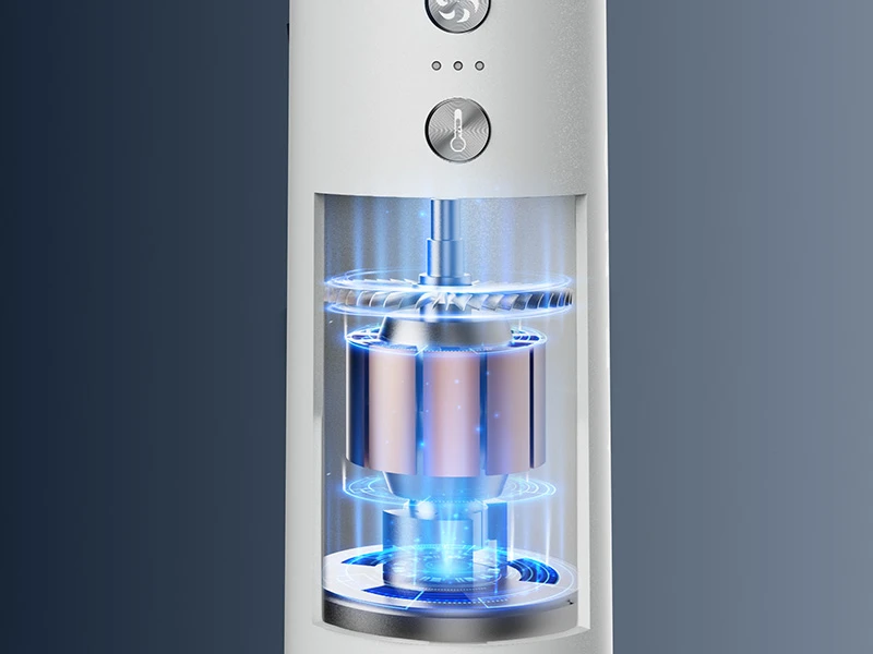 Фен AENO HS1 оснащений потужним безщітковим мотором професійного рівня, який гарантує стабільну роботу, довговічність і високу ефективність. Завдяки цій технології мотор працює тихо, споживає менше енергії та має тривалий ресурс. Він забезпечує інтенсивний повітряний потік для швидкого сушіння й точного укладання, залишаючись при цьому легким і зручним у використанні.