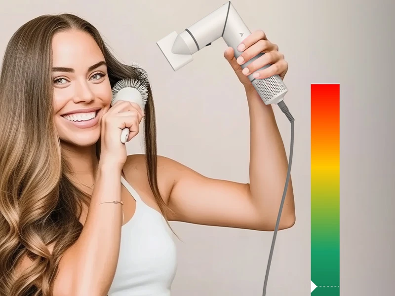 Фен HS1 оснащений інтелектуальним термоконтролем, який постійно стежить за температурою повітря, підтримуючи її в безпечному діапазоні для вашого волосся. Завдяки датчику NTC температура автоматично регулюється, запобігаючи перегріванню та мінімізуючи ризик пошкодження волосся. Це дозволяє зберегти його зволоженим, гладеньким і здоровим навіть при регулярному використанні.