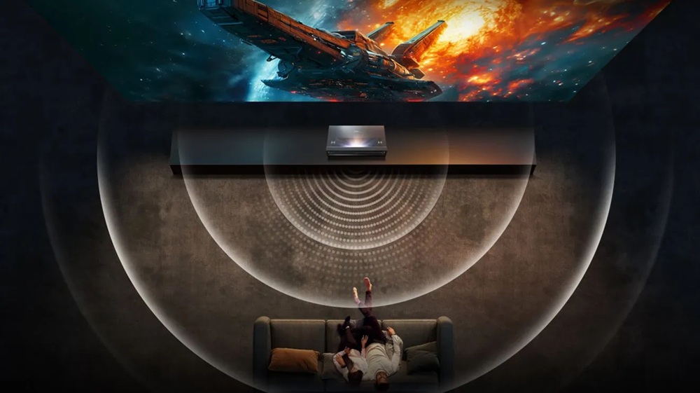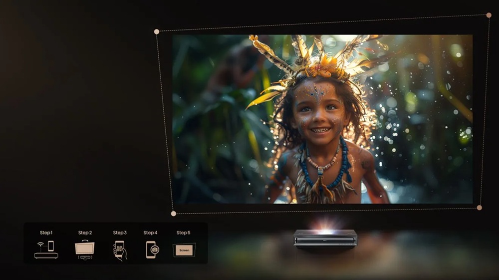 За допомогою технології з використанням ультратонкої лінзи створює яскраві, реалістичні зображення з розміром від 80 дюймів до величезних 150 дюймів. Просто розмістіть консоль на потрібній відстані від стіни, щоб отримати зображення ідеального для кімнати розміру навіть у тісному приміщенні.
