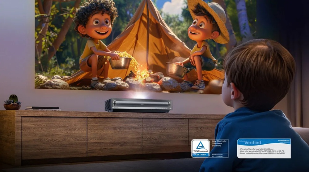 Насолоджуйтеся неймовірним зображенням без втоми для очей. Завдяки відсутності шкідливого синього випромінювання лазерний телевізор Hisense створює умови для неймовірно комфортних кіномарафонів, щоразу бездоганно поєднуючи перегляд з комфортом.